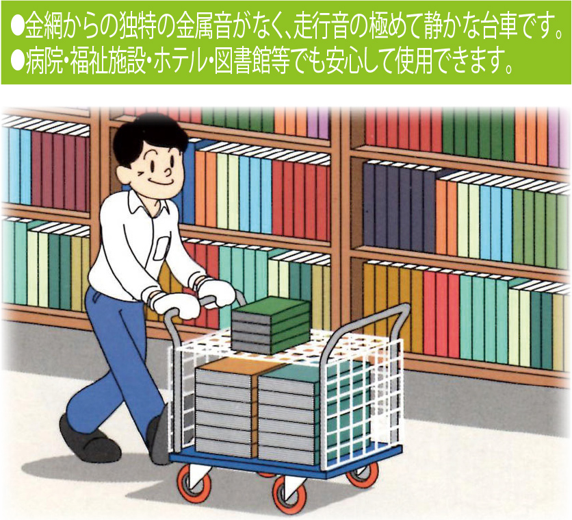金網からの金属音がなく、走行時も比較的に静かで、屋内、屋外のあらゆる使用環境に最適です。また、金網の表面は内も外も非常に滑らかで手に優しく、耐傷つき性が高いです。